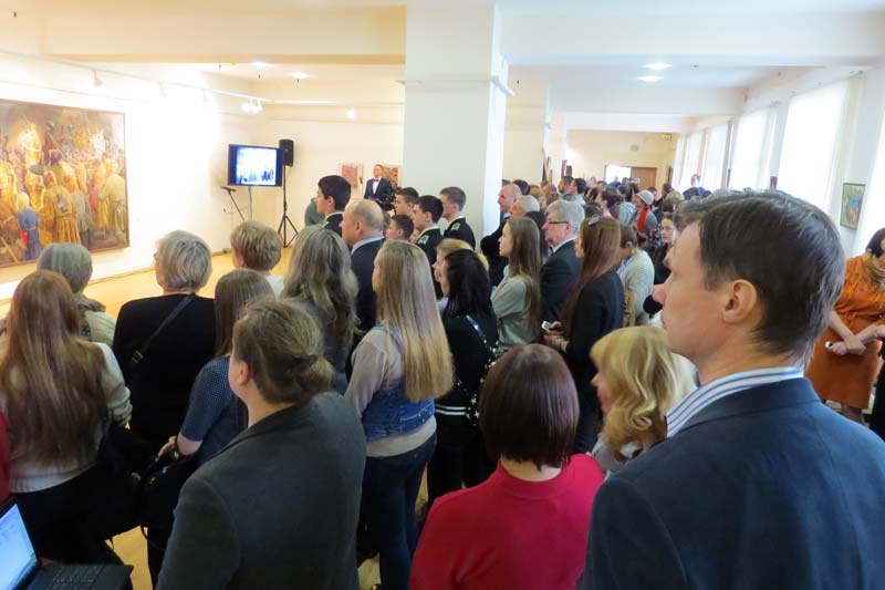 «Гавриил Горелов писал картину в Ленинграде в страшные годы блокады. Писал ценой неимоверных усилий, но в памяти его и сознании стояли образы воинов Александра Невского, его подвиг, который давал силы отстоять родную землю, отстоять страну в борьбе с самой страшной силой человечества, когда коричневая чума уже полностью была над Европой. Александр Невский скажет: «Не в силе Бог, а в правде». Правда заключается в силе русского духа. На этом держится Русь», – сказал Владислав Николаевич.