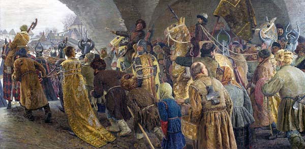 Автор картины «Ведут псов-рыцарей во Псков» – любимый ученик Ильи Репина. Он начал писать её в 1941 году, но из-за начавшейся Великой Отечественной войны закончить работу над полотном удалось только в 1947 году. Затем в течение года картина выставлялась в Москве, Ленинграде и других городах, а позже была отправлена в музей в Иркутскую область. За неё Гавриил Горелов был удостоен Государственной премии.
