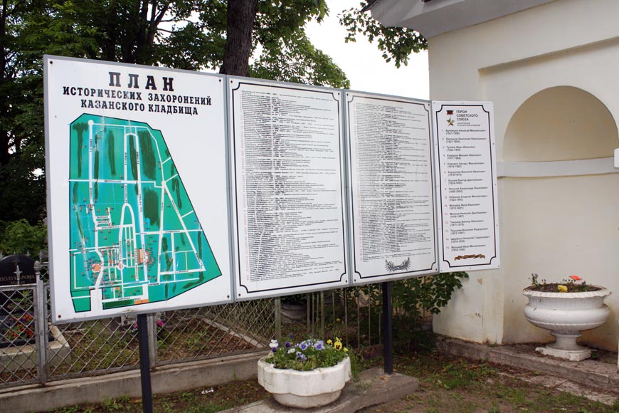 Историческая планировка, многие захоронения Казанского кладбища сохранились до сих пор. На кладбище, предназначенном для жителей города придворного ведомства, было похоронено немало привилегированных и богатых людей.