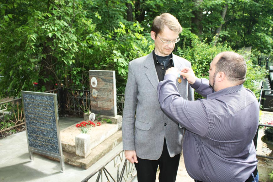 Виктор Анатольевич Панов показал руководителям благотворительного фонда «Возрождение культурного наследия» Александру Николаевичу Панину и Семёну Яковлевичу Ваксману заброшенную, заросшую и заваленную мусором могилу. С трудом удалось рассмотреть небольшой надгробный обелиск с портретом Владимира Александровича.