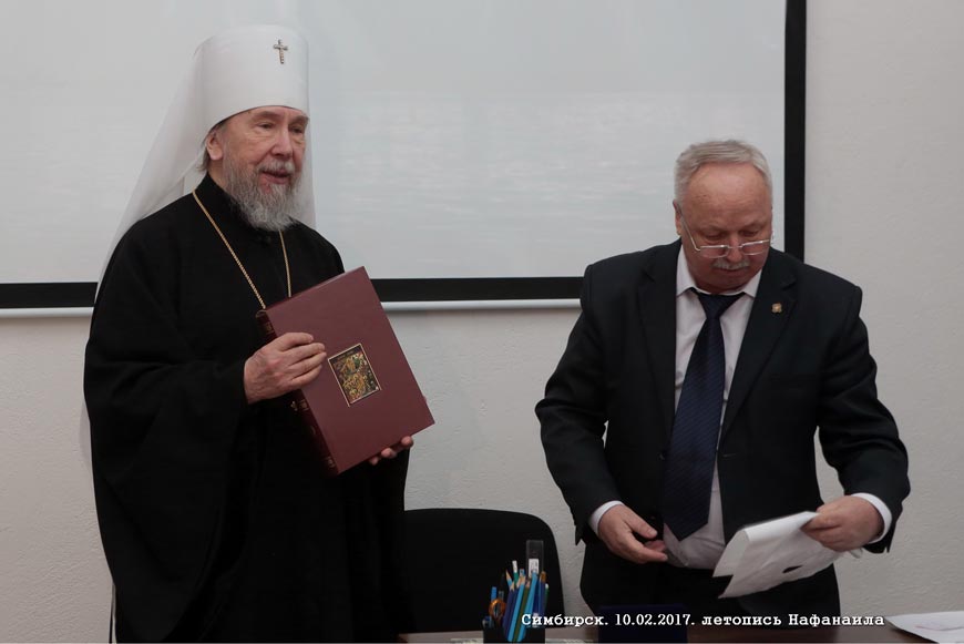 От имени председателя Императорского Православного Палестинского Общества Сергея Степашина секретарь ИППО Александр Долинин вручил митрополиту Анастасию орден Великого князя Сергея Александровича. Председатель Симбирского отделения ИППО