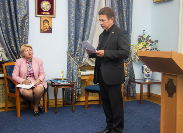 По первому вопросу выступил председатель отделения Юрий Петрович Смирнов. Он остановился на основных направлениях работы отделения в 2011-2016 гг.