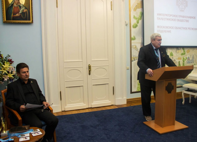 По второму вопросу повестки дня прошло выдвижение кандидатов и голосование. Единогласно было решено избрать Ю.П. Смирнова председателем Московского областного регионального отделения Императорского Православного Палестинского Общества.