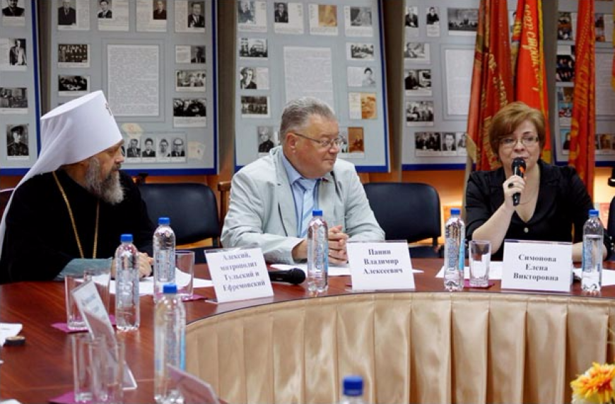 Елена Симонова, доктор исторических наук, председатель отделения Российского исторического общества в Туле, отметила, что успешность трёхгодичной деятельности Российского исторического общества во многом обусловлена благословением и молитвенной поддержкой митрополита Тульского и Ефремовского Алексия: