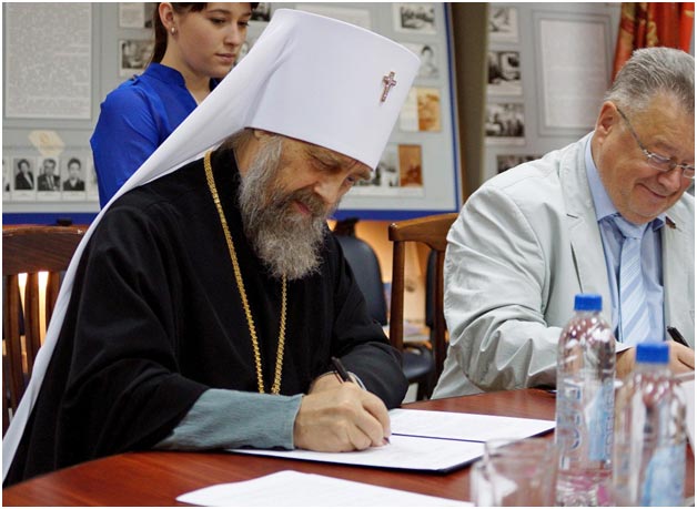 Открывший встречу Владимир Панин, ректор ТГПУ, отметил её историческую значимость: «Сегодня у нас торжественное заседание, так как мы будем подписывать соглашение с Тульским отделением Императорского Православного Палестинского Общества, председателем которого является владыка Алексий, митрополит Тульский и Ефремовский. Слава Богу, что сейчас мы стали относиться по-другому к историческому наследию и всем достижениям наших предков. Убеждён, что подписание соглашения станет ещё одним приятным и значимым стимулом для совместных трудов на благо Российской Федерации».