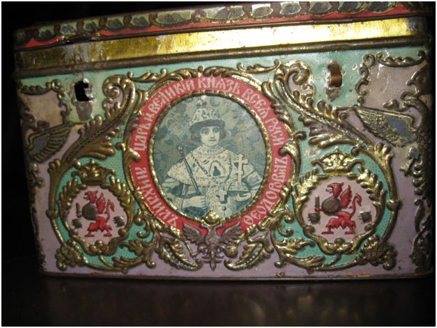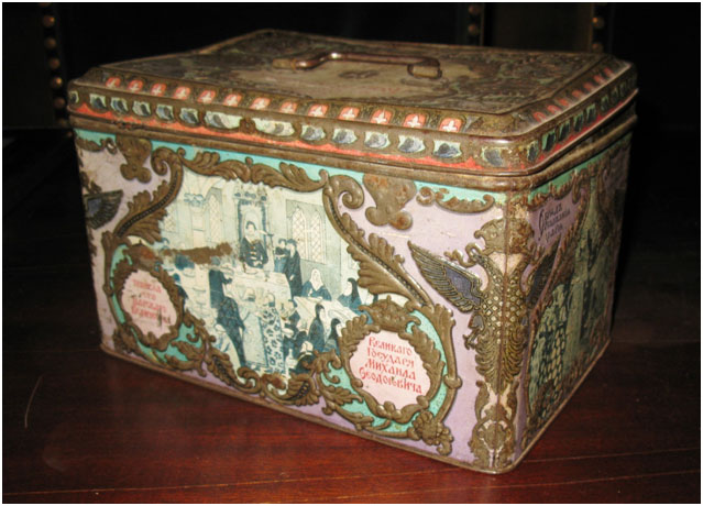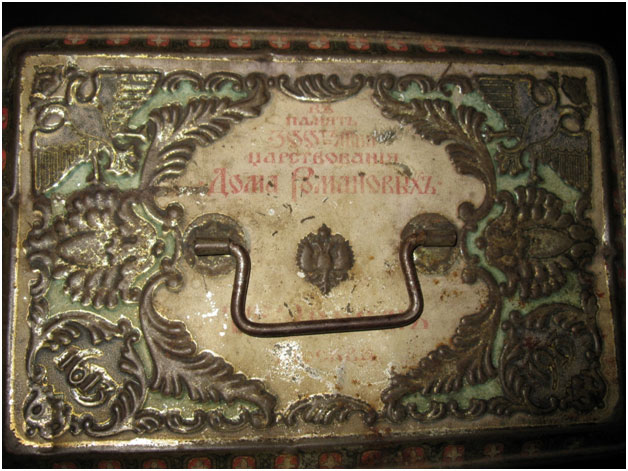 Отдельная часть занятия была посвящена тому, как кондитеры откликнулись на празднование 300-летия Дома Романовых. Воспитанники с интересом рассмотрели форму для печенья – жестяной сундучок (1913 год), все боковые поверхности которого украшены сценами из жизни Михаила Фёдоровича.