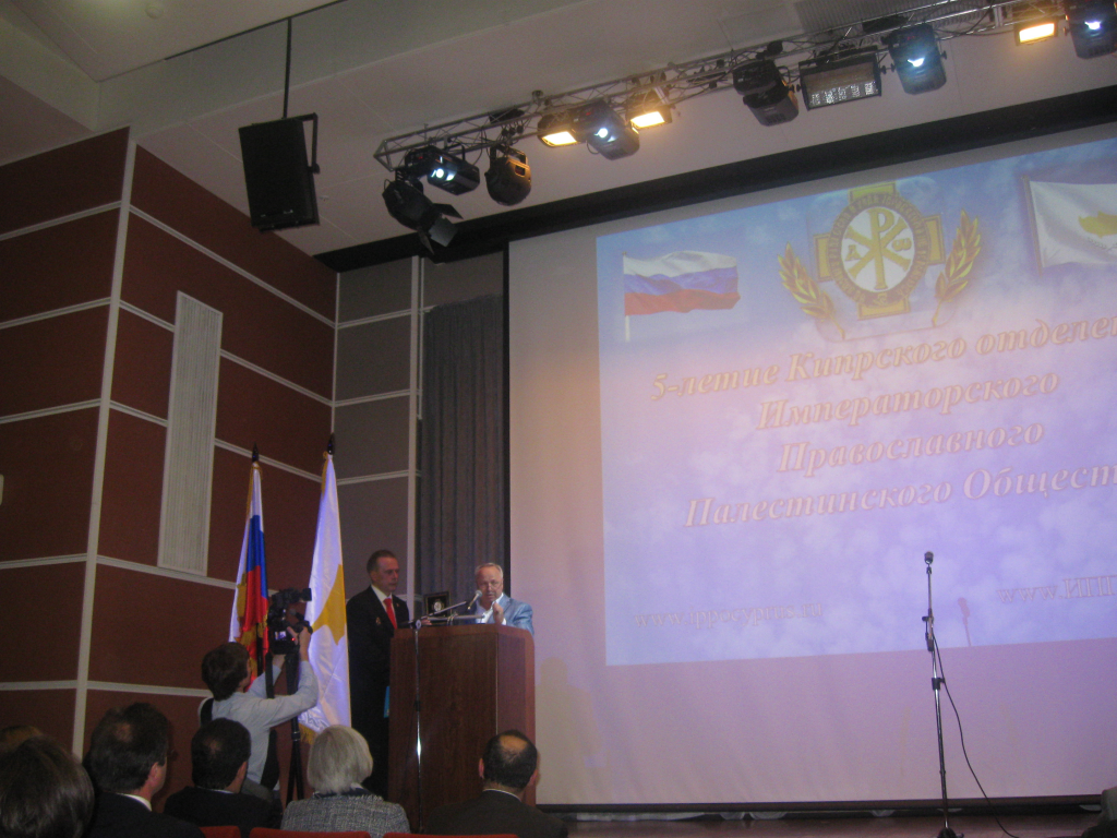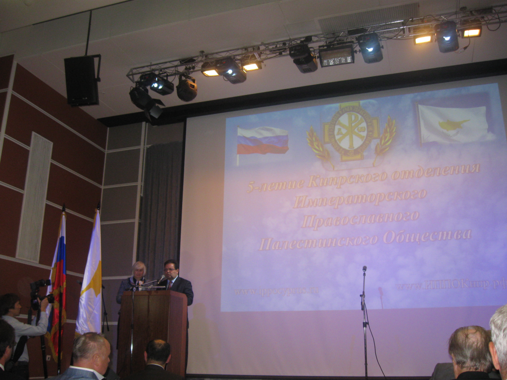 На вечере, посвященному этим датам, выступил Чрезвычайный и Полномочный посол Кипра в Российской Федерации господин Георгиос Касулидис, который назвал Россию покровительницей святынь в Русской Палестине. Дипломат отметил также плодотворную деятельность Кипрского отделения ИППО и его руководителя и пожелал новых успехов в укреплении российско-кипрских связей.