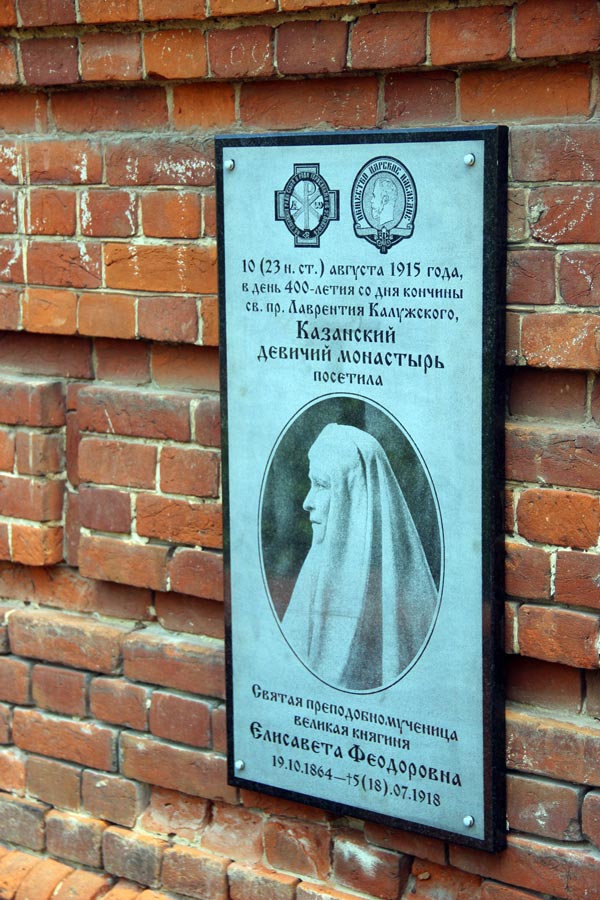 Игуменья Анастасия поблагодарила председателя Калужского ИППО Виталия Гороховатского и председателя общества «Царское наследие» Сергея Зотова за установленную доску и сказала о том, что митрополит Калужский и Боровский Климент благословил придел Царственных мучеников в её монастыре. Сейчас там идут реставрационные работы, и обитель приложит все усилия к тому, чтобы в год 100-летия памяти святых Царственных страстотерпцев и Алапаевских мучеников встретить крестный ход по стопам святой преподобномученицы Елисаветы.