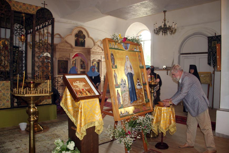 Шествие встретила настоятельница монастыря игуменья Анастасия (Мордмилович) с сёстрами. В монастыре отслужили молебен святой преподобномученице Елисавете, и была торжественно открыта мемориальная доска в память о пребывании здесь Великой княгини Елизаветы Фёдоровны в 1915 году.