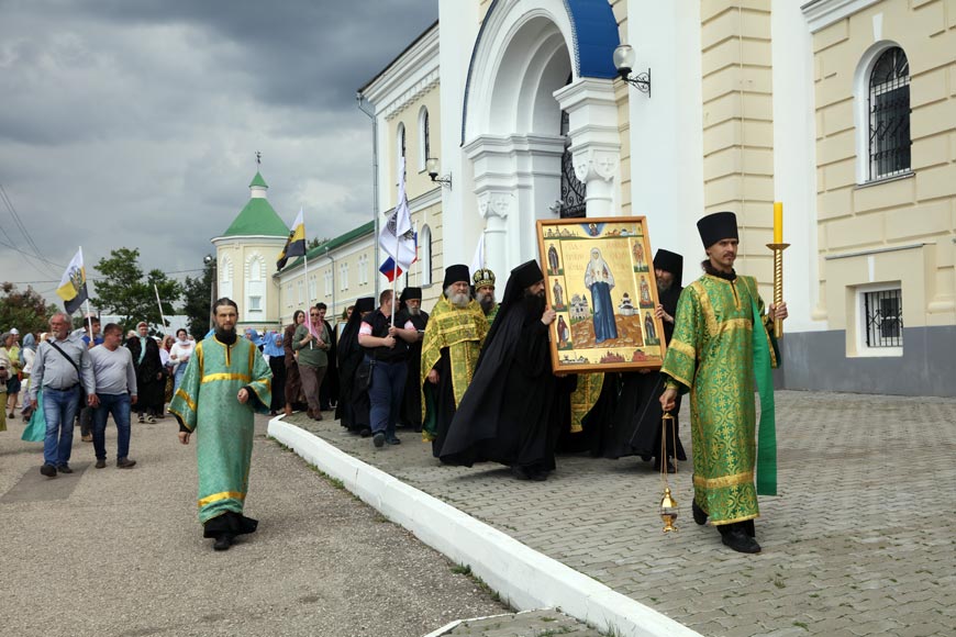Затем по центральным улицам города через главную площадь Старый торг крестный ход прошёл к стенам возрождающегося Казанского девичьего монастыря.