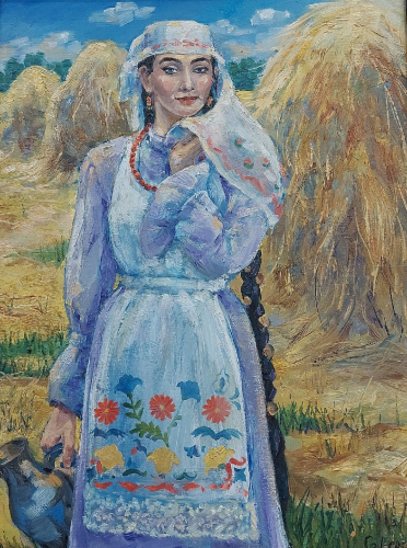 На выставке представлены работы, выполненные в живописи и графике, каждая из которых показывает красоту и самобытность культуры татарского народа к его сказкам и приданиям, обычаям и традициям, к национальным праздникам и историческому наследию.