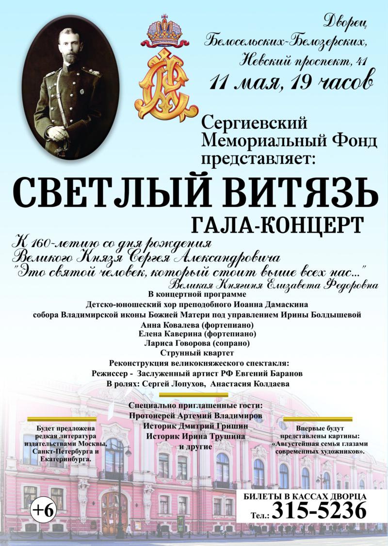 В Санкт-Петербурге пройдёт концерт, посвящённый 160-летию со дня рождения Великого князя Сергия Александровича