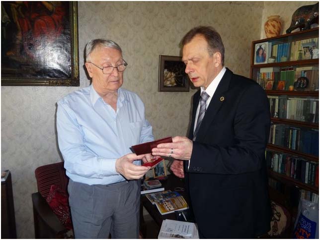 Леонид Буланов поздравил Владимира Тыминского со Светлой Христовой Пасхой, пожелал дальнейших успехов в научной и общественной деятельности, а также вручил ему юбилейную медаль «55-лет общественных отношений Кипр–Россия».