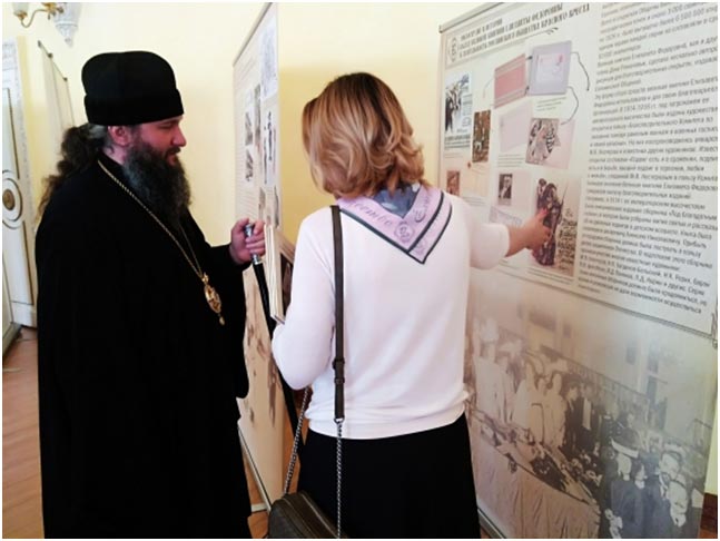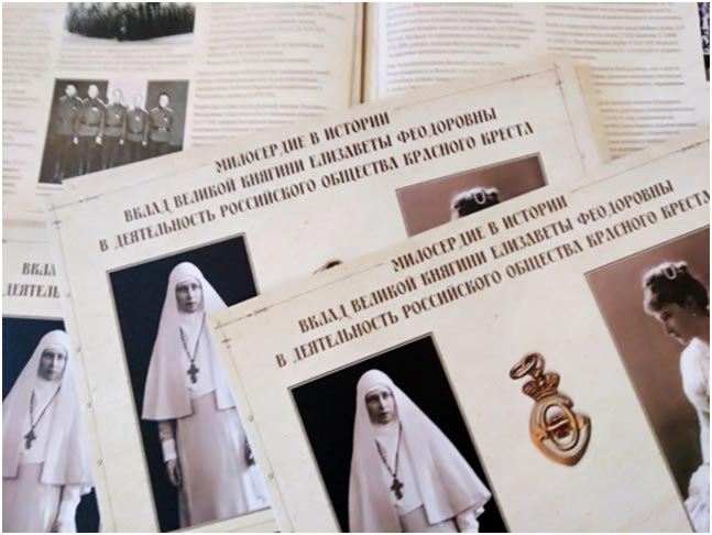 – Она посвящена деятельности Елизаветы Фёдоровны в Российском обществе Красного Креста. Елизавета Фёдоровна возглавляла Московское отделение Красного Креста, – рассказывает организатор выставки, директор фонда «Елисаветинско-Сергиевское просветительское общество» Татьяна Александровна Романова. – И её трудами было организовано огромное движение по организации помощи нуждающимся, прежде всего, в годы Русско-японской и Первой мировой войн. И все технологии, которые Елизавета Фёдоровна отрабатывала для организации помощи во время военных действий, она также использовала во время вообще бедствий, работало такое «мини министерство» чрезвычайных ситуаций – помощь во время голода, помощь во время эпидемий, тифа. Елизавета Фёдоровна организовывала сбор пожертвований, медицинские выездные бригады, организовывала, конечно, деятельность сестричества милосердия.