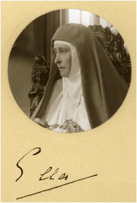 Вети́й челове́ческих уста́ не возмо́гут досто́йно восхвали́ти кре́пость любве́ твоея́ во дни бед и напа́стей вели́ких, обыше́дших Оте́чество на́ше, егда́ не восхоте́ла еси́ поки́нути Росси́ю и оби́тель, тобо́ю созда́нную, се́стры тоя́ за ве́ру правосла́вную да́же до сме́рти стоя́ти увещава́ющи. Мы же с любо́вию восхваля́ем тя: