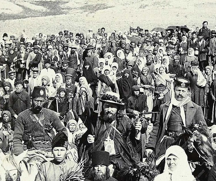 Фотографии из так называемой палестинской коллекции, которые хранятся сейчас в Государственном музее истории религии – а это около 7 тысяч фотоснимков, принадлежавших до революции Императорскому Православному Палестинскому Обществу – сохранили для нас и образ караванов, и лица паломников, и даже то самое перечное дерево, у которого служили молебны перед отправкой каравана и на месте которого сейчас лежит асфальт.