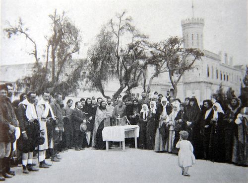 Речь идет о жизни Русского Иерусалима, где во второй половине 19 века были построены рядом друг с другом Троицкий собор для Русской Духовной Миссии, два подворья для паломников - мужское и женское, названные Елисаветинским и Мариинским, и Русская больница. Все это называется до сих пор – Русские постройки. В 1889 году подворья и больница были переданы в ведение Императорского Православного Палестинского Общества, которое в тот же год закончило строительство своего первого подворья – Нового, именно так оно сначала называлось, а позднее получило название Сергиевского.