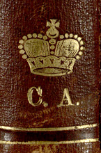 Золототисненый суперэкслибрис, помещенный в нижней части корешка книги. Знак образуют две заглавные буквы-инициалы «С. А.». Над инициалами возвышается императорская корона. Книжный знак выполнен в конце XIX в. Автор неизвестен.