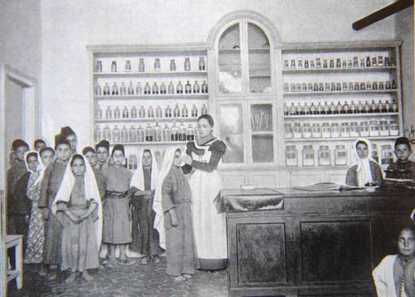 «В Бейтджале мы выстроили деток в два ряда, по обеим сторонам дороги они держали масличные ветки, и только что Их высочества сошли с лошадей, они запели довольно ровно и верно «Спаси Господи». Потом в классе пели «Отче наш», позднее арабскую песню (приветствие), которое очень понравилось, и в конце «Боже, Царя храни». Учительницы держали себя очень прилично и хорошо, и без особенной застенчивости отвечали Их Высочествам. Дом мы украсили зеленью и великому князю Павлу Александровичу, который прямо прошел в залу, убранство приемной комнаты понравилось. Верхним этажом, приближающимся к окончанию, великий князь тоже остался доволен, только заметил: “Здесь еще очень сыро и жить нельзя”. Он не знал, что только за два часа до Их приезда пришлось мне почти насильно выгонять оттуда красильщиков и штукатуров. Мысль о том, чтобы пансион в Бейтджале был исключительно для круглых сирот была встречена великим князем и великой княгиней очень сочувственно, и поистине, думается, что так будет лучше, отчасти потому, что сиротки такие жалкие, а частию и потому, что легче будет вести их в одном духе, и, по возможности, готовить из них будущий контингент учительниц в школах»37.