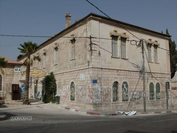Знак Палестинского Общества и памятная табличка на здании амбулатории.
