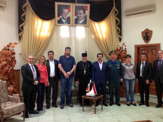 Самолет из России в аэропорту Латакии тепло встречали губернатор провинции Латакия Ахмад Шейх Абдель-Кадер, представители Сирийского Красного Креста, Антиохийского Патриархата, сотрудники российского посольства в Сирийской Арабской Республике, журналисты и общественность Латакии. Среди встречавших был и давний друг ИППО, член Общества Анас Мохсен, который не раз оказывал содействие в доставке помощи ИППО в различные районы Сирии, рисковал своей жизнью, возил письма и посылки детям из приюта в Маалюле.