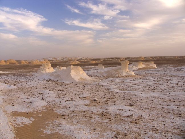Белая пустыня… Оглушающая тишина застывшего мира к западу от Нила. На западе ежедневно умирает солнце. И мир погружается в темноту. Когда-то во времена Атлантов здесь было море – безбрежное, как бесконечность и такое же опасное для беспечных. Путешествие на джипе через пустыню подобно мореплаванию, хотя джип, конечно, не «корабль пустыни» — слишком быстр и слишком шумен. Отвлекает от мыслей о вечном. Поэтому пустыню можно услышать лишь на стоянках. Только тогда понимаешь, что такое ТИ-ШИ-НА. Только тогда магия спокойствия постепенно укутывает воспаленный мозг, убивает мелочную суету и взбудораженные мысли, сплетенные в змеиный клубок повседневными хлопотами и взаимоотношениями.
