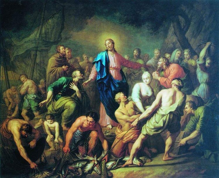 О чудесном улове рыбы рассказано в Евангелии от Луки (Лк., 5:1-11). Христос вошел в рыбацкую лодку Симона Петра, чтобы из нее проповедовать собравшемуся народу, а затем сказал Петру и его спутникам, чтобы они закинули сети. И сети были настолько наполнены рыбой, что Иакову и Иоанну, находившимся в другой лодке, пришлось прийти к ним на помощь. Все они были поражены и испуганы.