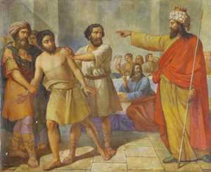 Но они, пренебрегши то, пошли, кто на поле своё, а кто на торговлю свою; прочие же, схватив рабов его, оскорбили и убили их. Услышав о сем, царь разгневался, и, послав войска’ свои, истребил убийц оных и сжёг город их.