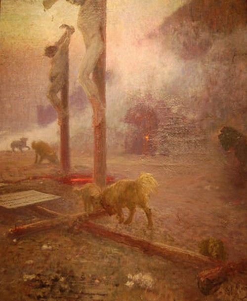 Картина «Голгофа» находится в частном собрании в Норвегии. Она также задумана небывало смело. На ней видны только два креста, вместо обычных трех: один крест лежит на земле, ибо друзья уже позаботились унести и похоронить тело Христа, запекшуюся кровь которого лижут собаки. Трудно судить о картине только по фотографии, которую лишь после долгих усилий удалось получить, но по свидетельству посетивших Репина советских художников, она и по живописи производит сильное впечатление. Размер ее 215x170 см.