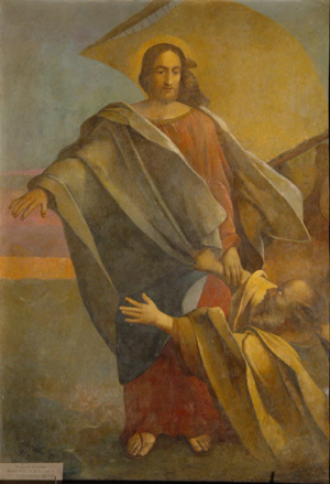 Иисус Христос спасает утопающего Петра.