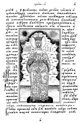 Фрагмент текста жития Св. княгини Ольги и миниатюра с ее изображением