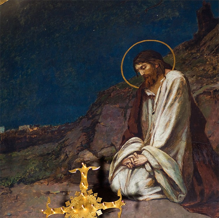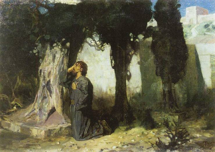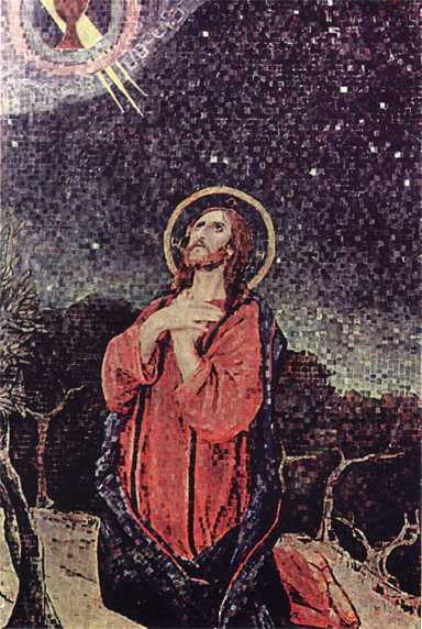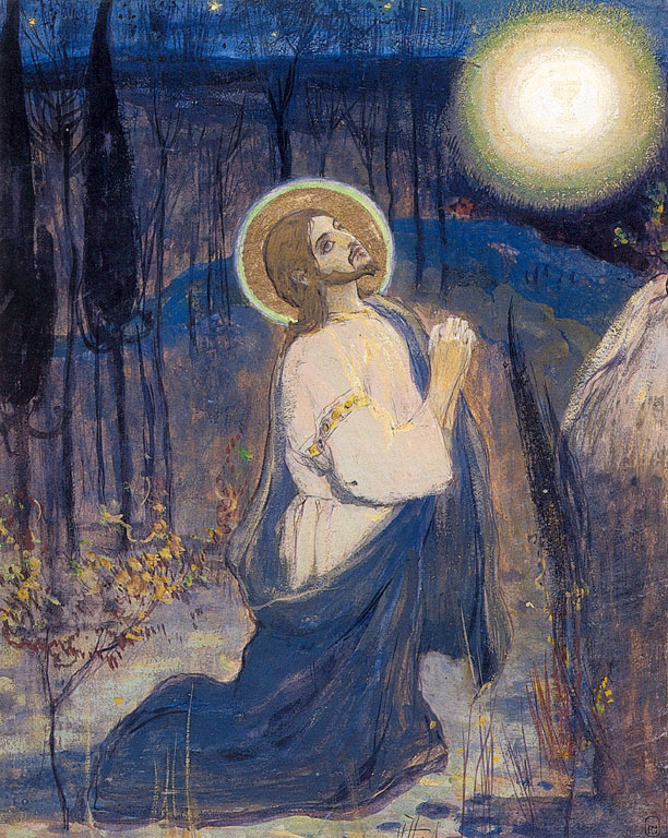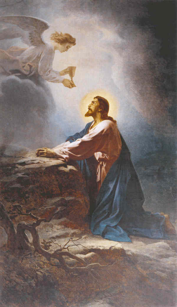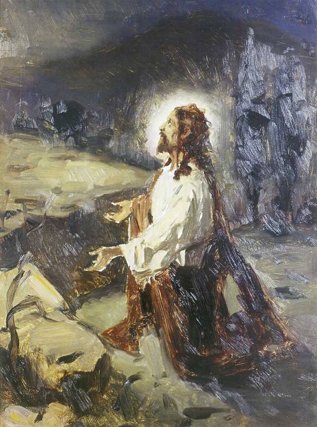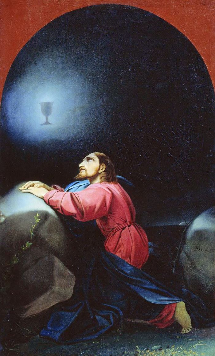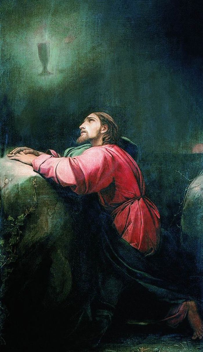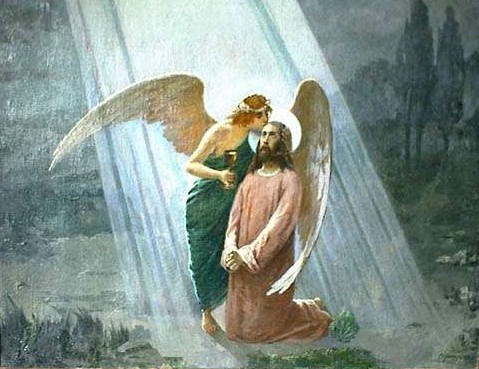 …и, преклонив колени, молился, говоря: Отче! о, если бы Ты благоволил пронести чашу сию мимо Меня! впрочем не Моя воля, но Твоя да будет. Явился же Ему Ангел с небес и укреплял Его. Евангелие от Луки