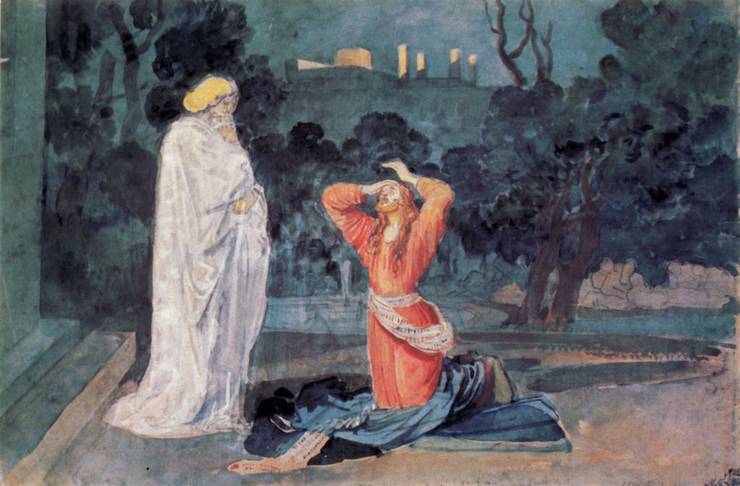 М. В. Нестеров. 1898 г. Бумага на картоне, графитный карандаш, гуашь, темпера, бронза 34х27,5.