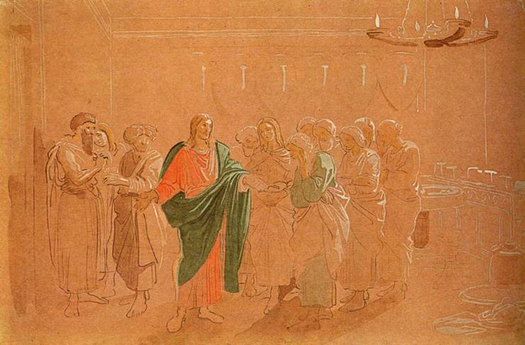Христос с учениками выходит в Гефсиманский сад. Эскиз.