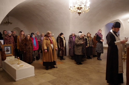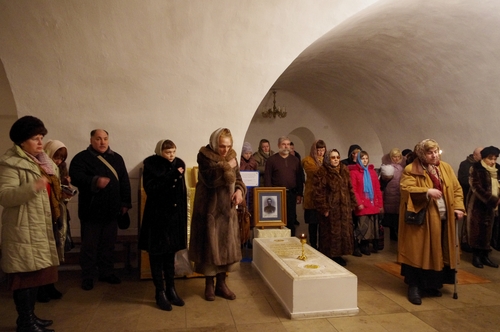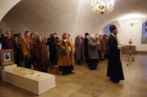 В усыпальнице бояр Романовых была отслужена лития у надгробия великого князя Сергея Александровича. Первоначально прах великого князя Сергия Александровича был похоронен в склепе в Чудовом монастыре, который был взорван при советской власти. Позднее во время дорожных работ останки великого князя были обнаружены и перезахоронены в усыпальнице бояр Романовых Новоспасского монастыря.
