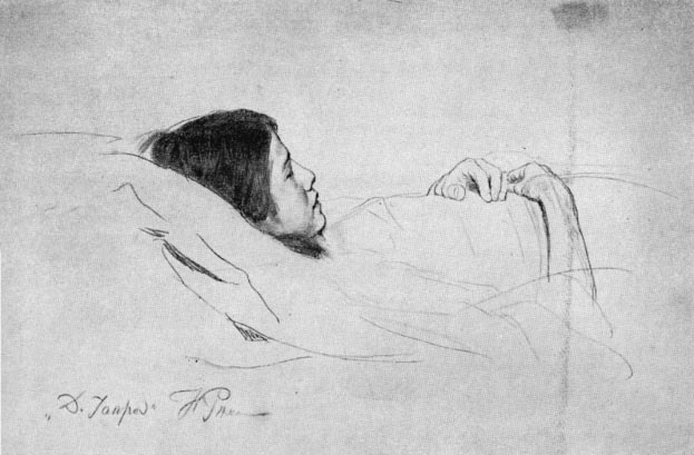 И. Е. Репин. Лежащая в гробу девушка. Карандашный этюд для картины. 1871.