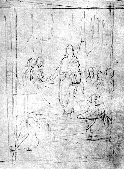 В. Д. Поленов. Воскрешение дочери Иаира. Эскиз. 1871. Б., карандаш. 49х61,5.