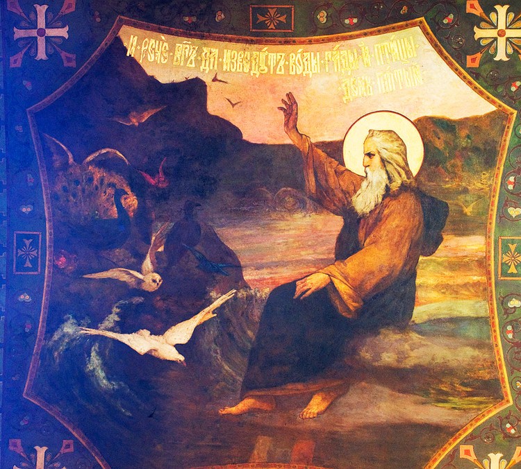 «В шестисотый год жизни Ноевой, во второй месяц, в семнадцатый день месяца, в сей день разверзлись все источники великой бездны, и окна небесные отворились; и лился на землю дождь сорок дней и сорок ночей. И усилилась вода на земле чрезвычайно, так что покрылись все высокие горы, какие есть под всем небом; на пятнадцать локтей поднялась над ними вода, и покрылись [все высокие] горы. И лишилась жизни всякая плоть, движущаяся по земле, и птицы, и скоты, и звери, и все гады, ползающие по земле, и все люди; все, что имело дыхание духа жизни в ноздрях своих на суше, умерло». Книга Бытия