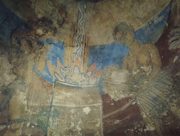 Роспись расположена на потолке служебного помещения, в торце левого нефа