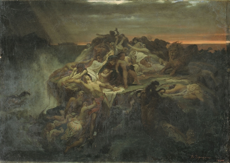 В 1862 году Айвазовский пишет два варианта картины «Всемирный потоп», и затем в течение жизни неоднократно возвращается к этому библейскому сюжету. Один из лучших вариантов картины «Всемирный потоп» написан им в 1864 году.