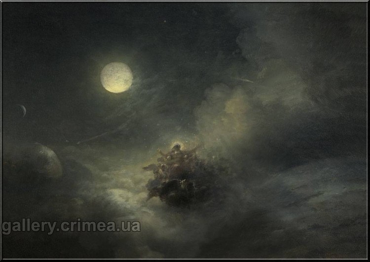 Айвазовский, как правило, писал свои картины без предварительных этюдов и эскизов. Но были и исключения. На эскизе к картине «Хаос» основное внимание уделено бесконечному пространству. Из невообразимой дали исходит свет, который пробивается на первый план. Согласно христианской философии, Бог — это свет. Этой идеей проникнуты многие произведения Айвазовского. В данном случае автор мастерски справился с задачей воспроизведения света. Картину подобного содержания еще в 1841 году Айвазовский подарил Папе Римскому, после того как Григорий XVI решил купить ее для своей коллекции. Н. В. Гоголь (1809-1852), высоко ценивший творчество никому не известного молодого стипендиата, писал: «Изображение „Хаоса", по общему мнению, отличается новой идеей и признано чудом искусства». Известно и другое, шутливое высказывание Гоголя: «Пришел ты, маленький человек, с берегов Невы в Рим и сразу поднял „Хаос" в Ватикане». Крымская художественная галерея