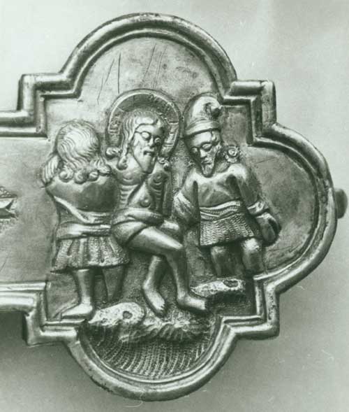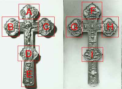 ![]() A. Сошествие во ад Деталь креста 1790 года (ЦМиАР, ВХ-1338/1) ![]() B. Рождество Христово Деталь креста 1790 года (ЦМиАР, ВХ-1338/1) ![]() C. Богоявление Деталь креста 1790 года (ЦМиАР, ВХ-1338/1) ![]() D. Две мученицы Деталь креста 1790 года (ЦМиАР, ВХ-1338/1) ![]() E. Орудия Страстей Христовых Деталь креста 1790 года (ЦМиАР, ВХ-1338/1) ![]() F. Несение креста Деталь креста 1790 года (ЦМиАР, ВХ-1338/1) ![]() G. Моление о чаше Деталь креста 1790 года (ЦМиАР, ВХ-1338/1) ![]() H. Снятие с креста Деталь креста 1790 года (ЦМиАР, ВХ-1338/1) ![]() I. Апостол Петр с ключами от рая Деталь креста 1790 года (ЦМиАР, ВХ-1338/1) Фотографии и текстовые материалы предоставлены для публикации российским Ставрографическим центром. Литература: Гнутова 1994. Гнутова С. В. Орудия Страстей Христовых на русских крестах XVII–XIX веков // Филевские чтения. Вып. V / Материалы третьей научной конференции по проблемам русской культуры второй половины XVII — начала XVIII веков. — М., 1994. — Стр. 70, илл. на стр. 83. |