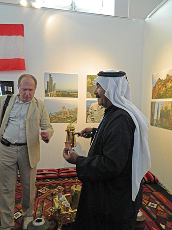 На церемонии открытия выставки в Манеже присутствовало более тысячи человек: чиновники, ученые, дипломаты, общественные и религиозные деятели, – и это явилось свидетельством подлинно живого интереса к обозначенной теме. В числе гостей находились представители крупных православных общественных организаций, которые так же, как и Палестинское общество, тесно сотрудничают в культурных и просветительских целях со странами Ближневосточного региона. Сегодня эта деятельность очень востребована и многопланова, но, разумеется, пальма первенства принадлежит именно Палестинскому Обществу.