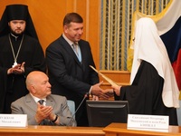 ![]() Вручение Патриаршей грамоты М. В. Одинцову ![]() Вручение Патриаршей грамоты академику И. М. Куликову |