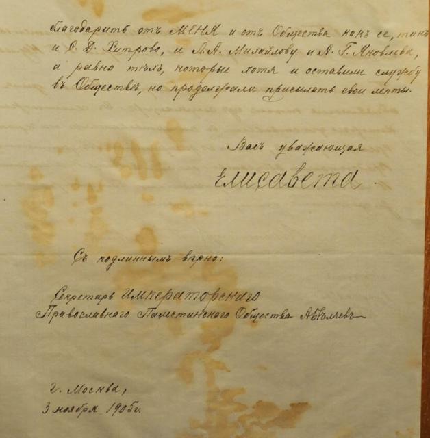Письмо Председателя ИППО великой княгини Елизаветы Федоровны вице-председателю Н.М. Аничкову от 3 ноября 1905 г.