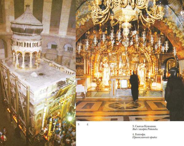 его стен. Со времён Константина Великого Голгофа находится в храме Воскресения Христова. Если на Голгофе идёт богослужение, паломник принимает в нём участие, после чего подходит к месту распятия Спасителя, совершает краткую молитву и земной поклон, преклоняет колени и прикладывается к святыне. После этого он покидает Голгофу, спускается вниз и идёт мимо Камня Миропомазания в ротонду, где в центре находится Кувуклия – так по-гречески называется Гроб Господень.