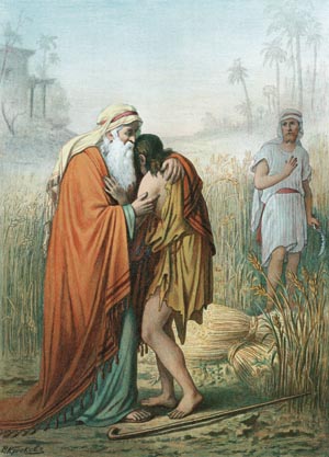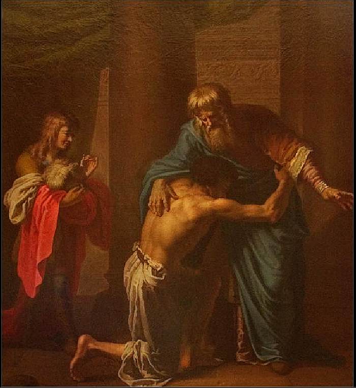 свиней. Раскаявшись в своих поступках, он осмелился вернуться под родительский кров, где был с любовью встречен простившим его отцом.