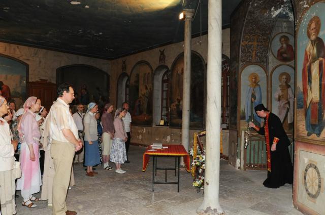 У нас, прихожан храма Державной иконы Божией Матери, конечно, особое ощущение и особые чувства, когда мы на Святой Земле молимся той, которой мы молимся каждый день. У нас в храме совершается каждый день Божественная литургия, каждый день поется тропарь Державной иконе Божией Матери, в честь которой освящен храм, и которая является нашей руководительницей. Получив по почте известие, что мы можем помолиться в Иерусалиме Державной иконе Божией Матери на Сергиевском подворье Императорского Православного Палестинского Общества, мы, с одной стороны, возрадовались большой радостью, но, с другой стороны, и не удивились, потому что из одной Обители попали в Её же самые руки. Мы можем засвидетельствовать всей группой паломников, что вся наша поездка у нас идет просто чудесным образом. Мы чувствуем благословение Матери Божией. И вот когда мы вошли на это место, то я думаю, что сердца всех отозвались на то, что сюда уже пришла Владычица, Она своими стопами здесь прошлась, а значит быть месту сему, и всем тем, кто трудится над возрождением этого места, ниспосылается особое Богородичное благословение.