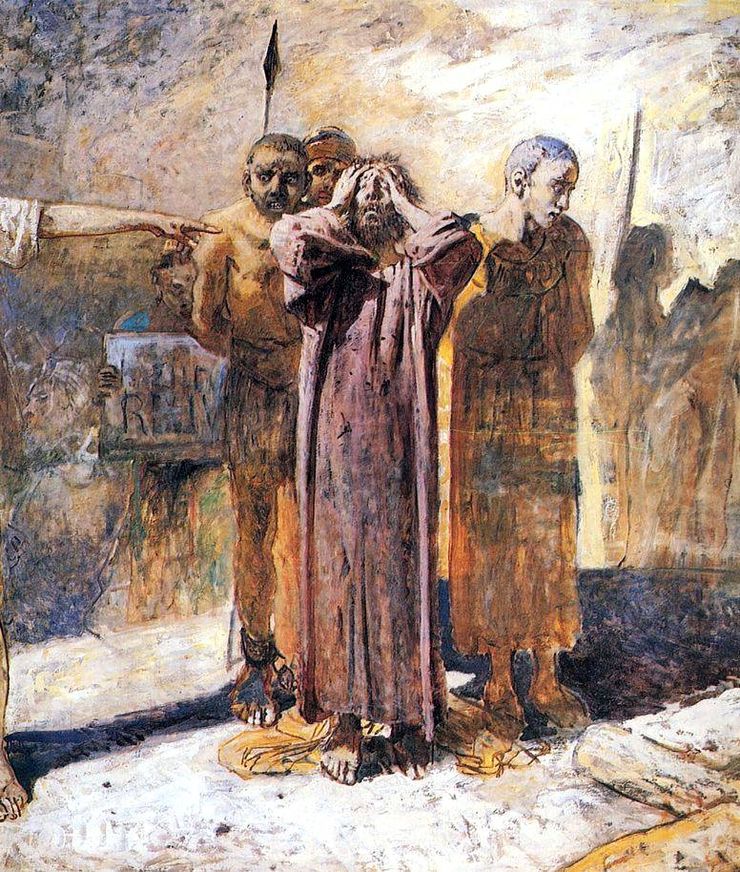 Толстой писал художнику в феврале 1894 года: «То, что картину сняли, и то, что про нее говорили, - это очень хорошо и поучительно. В особенности слова «это бойня». Слова эти все говорят: надо, чтобы была представлена казнь, та самая казнь, которая теперь производится так, чтобы на нее было так же приятно смотреть, как и на цветочки. Удивительная судьба христианства! Его сделали домашним, карманным, обезвредили его, и в таком виде люди приняли его, и мало того, что приняли его, привыкли к нему, на нем устроились и успокоились. И вдруг оно начинает развертываться во всем своем громадном, ужасающем для них, разрушающем все их устройство значении... Снятие с выставки - ваше торжество».