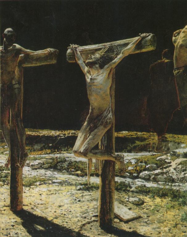 Художник о картине: Я долго думал, зачем нужно распятие... - для возбуждения жалости, сострадания оно не нужно... раскаяние нужно, чтобы сознать и почувствовать, что Христос умер за меня...